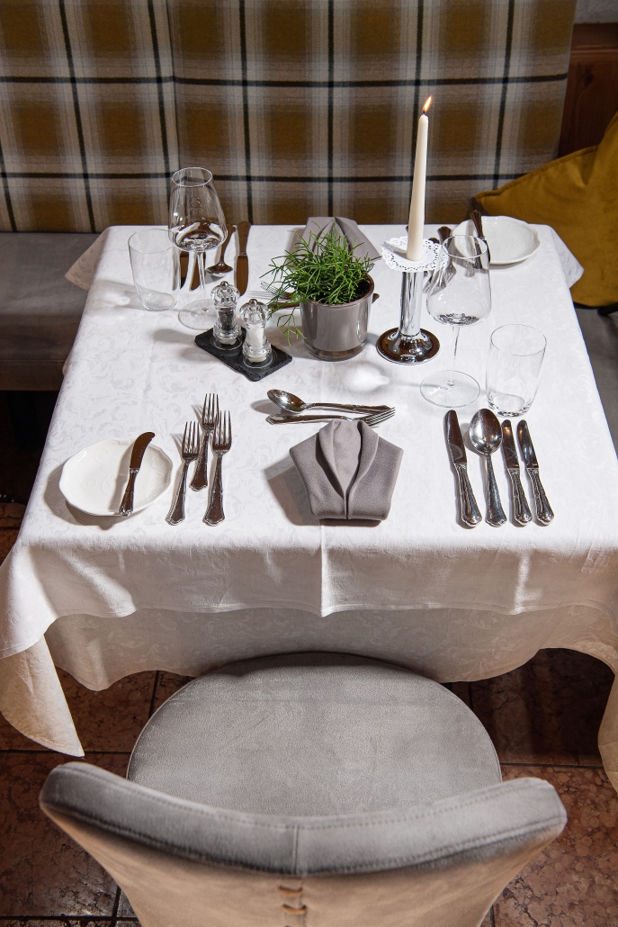 Insieme alla famiglia Walchhofer, è stata fatta una selezione di tovaglie di buon gusto per valorizzare al meglio gli invitanti ristoranti. Le borse wellness ricamate da noi contengono non solo il nostro morbidissimo accappatoio, ma anche tutto ciò che serve durante la giornata.