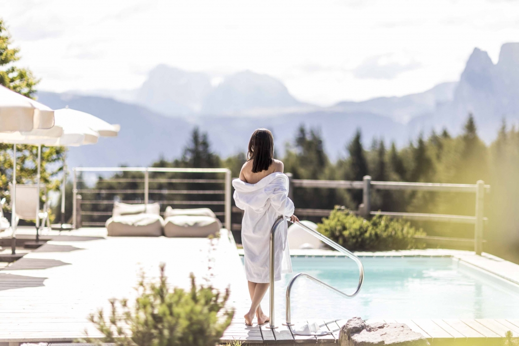 Il meraviglioso panorama e le diverse attività all’aperto possono essere godute in qualsiasi momento dell’anno. L’area wellness è dominata dal pino mugo e affascina con la sua vista sul mondo dolomitico.