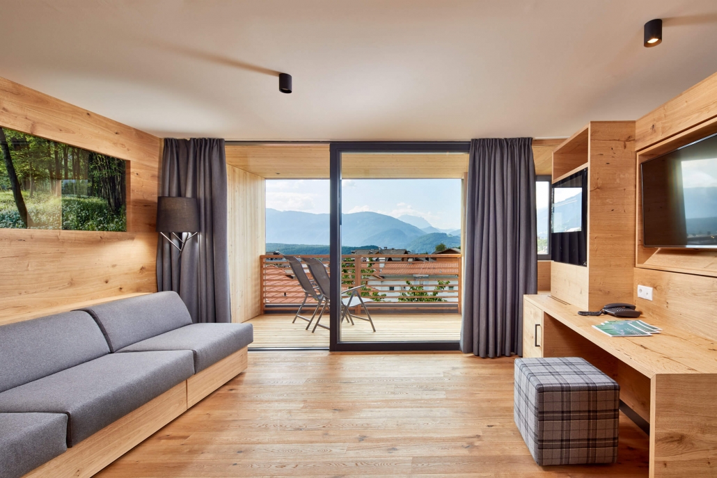 In un piccolo borgo soleggiato tra Kiens e Terenten, in Val Pusteria, a 1.110 metri, si trova l’hotel naturale Die Waldruhe. Un hotel che ha come concetto generale il benessere in montagna e la ricreazione sostenibile. La posizione soleggiata ai margini della foresta rende Die Waldruhe, come suggerisce il nome, un luogo ideale per chi cerca pace e tranquillità. La foresta è stata l’ispirazione per l’utilizzo di molto legno locale. Ciò si riflette anche nella nuova area sauna.
